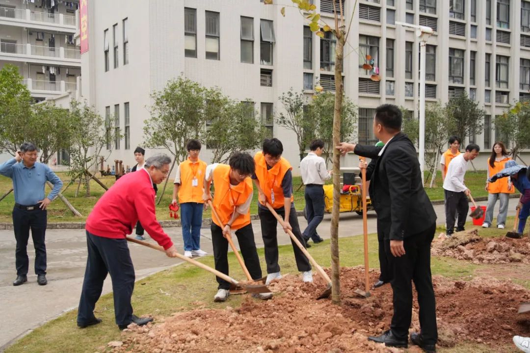 春风和煦,万物复苏。3月12日,在第47个植树节到来之际,学院团委组织70余名师生在学生公寓周围开展“绿美广东 青年先行”绿美青年林植树活动。学院党委书记林业强,党委专职副书记陈列,纪委书记刘育兰,学生工作部负责人韩锐、团委负责人张艳莉参加本次植树活动。