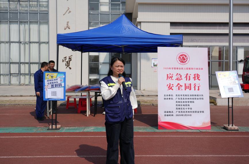 在消防安全板块,茂南区消防救援大队宣教员为师生们详细讲解了火灾预防、逃生技能以及灭火设备的正确使用方法。师生们通过抢答的方式巩固了消防应急知识,学习操作使用灭火器,巩固应急灭火技能。
