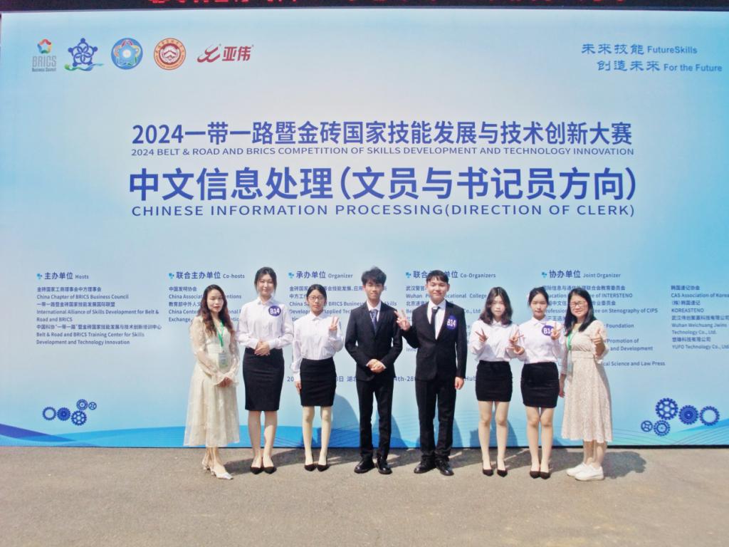 近日,我校6名学子在2024一带一路暨金砖国家技能发展与技术创新大赛“中文信息处理(文员与书记员方向)”赛项高校组决赛中表现优秀,荣获佳绩。此次赛事由金砖国家最高领导人会晤筹备委员会认可、中华人民共和国外交部备案、金砖国家工商理事会批准,是具有国际影响力的权威赛事。