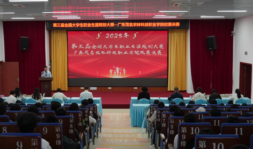 为全面普及大学生职业生涯规划知识,提高大学生的创新能力、实践能力和就业能力,引导大学生树立正确的成才观、择业观和就业观,合理规划学业与职业发展,提升就业竞争力,2025年12月5日下午,由教务部主办的第三届全国大学生职业规划大赛广东茂名农林科技职业学院校赛在行政楼一楼会议室顺利举行。
