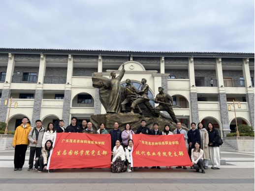 2025年12月26日,中共广东茂名农林科技职业学院现代农业学院党支部与生态园林学院党支部联合开展“缅怀先烈 红色之旅”主题党日活动,在学校纪委书记刘育兰、副校长林思诚的带领下,21名党员及预备党员前往信宜市怀乡镇,开展沉浸式红色教育实践,重温怀乡起义光辉历史,感悟革命先辈崇高精神。