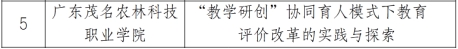 近日,茂名市教育局公布了第五批教育评价改革典型案例名单,我校申报的《“教学研创”协同育人模式下教育评价改革的实践与探索》成功入选,成为全市6个获评案例之一,标志着我校在职业教育评价改革领域取得重要突破。