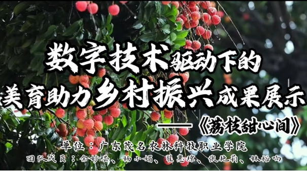 本活动资源由我校基础教学部余妙芸、杨小媚、翟惠琼、张艳莉、林裕响五位老师携手学生共同创作完成。作品立足茂名本土特色,以我校师生共创的原创歌曲《故乡情,龙眼韵》《荔枝甜心间》为载体,深度融合数字技术,构建“艺术创作+数字赋能+乡村振兴”实践模式,凭借鲜明地域特色与扎实育人成效,在全国众多申报项目中脱颖而出。