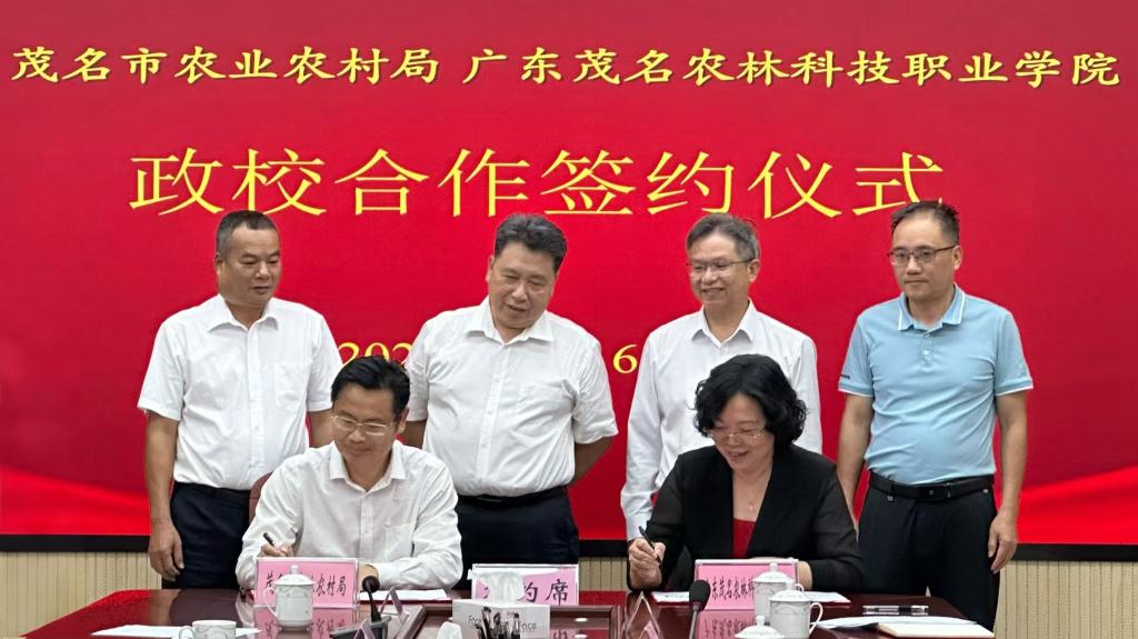 在全体与会人员的共同见证下,茂名市农业农村局与广东茂名农林科技职业学院正式签署校政合作协议。协议为期五年,涵盖人才培养、科研合作、技术推广、人才培训、“三农”宣传、数字农业建设等六大领域,标志着双方合作迈入全方位、深层次的崭新阶段。