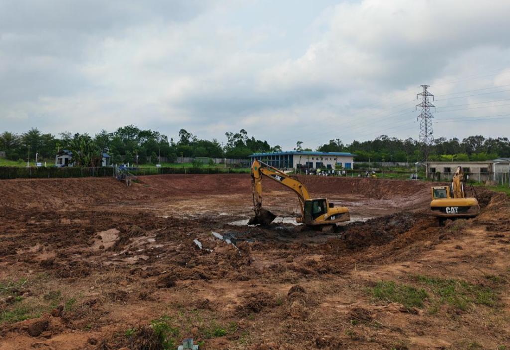 水产养殖实训基地依托学校省级高水平专业群建设平台,聚焦茂名市特色水产产业,以罗氏沼虾生态养殖为切入点,构建“产、学、研、训、创”五位一体的育人新载体。为支持基地运作、助力大学生创新创业及实训教学,学校于4月上旬迅速调配资源,将校内5亩鱼塘全部用于水产养殖教学和学生创业实践,着力打造集校园生态美化、学生劳动实践、专业实训教学于一体的综合平台。从鱼塘清淤、塘埂加固到进排水系统改造,从增氧机到深水泵的安装,学校全程协助团队夯实硬件基础,全力为养殖项目保驾护航。