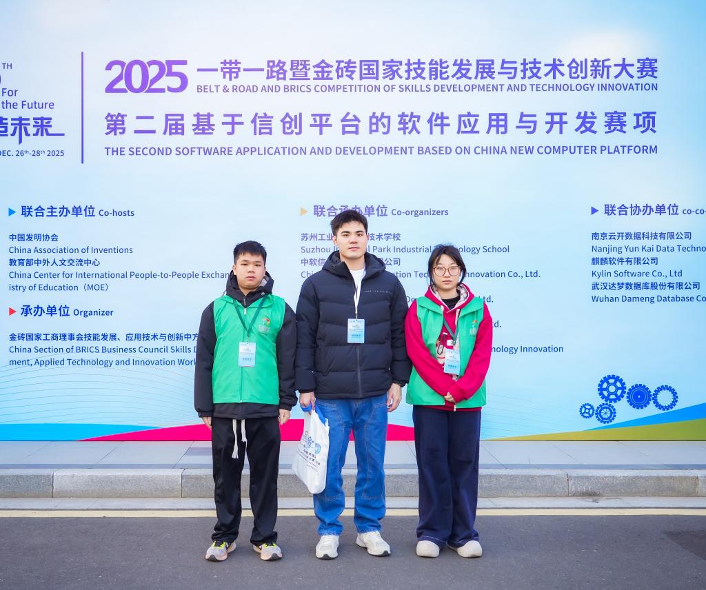 近日,2025 一带一路暨金砖国家技能发展与技术创新大赛第二届基于信创平台的软件应用与开发赛项决赛在苏州工业园区工业技术学校圆满落幕。我校师生在激烈角逐中表现亮眼,斩获多项荣誉,充分展现了扎实的专业素养和强劲的实践能力!