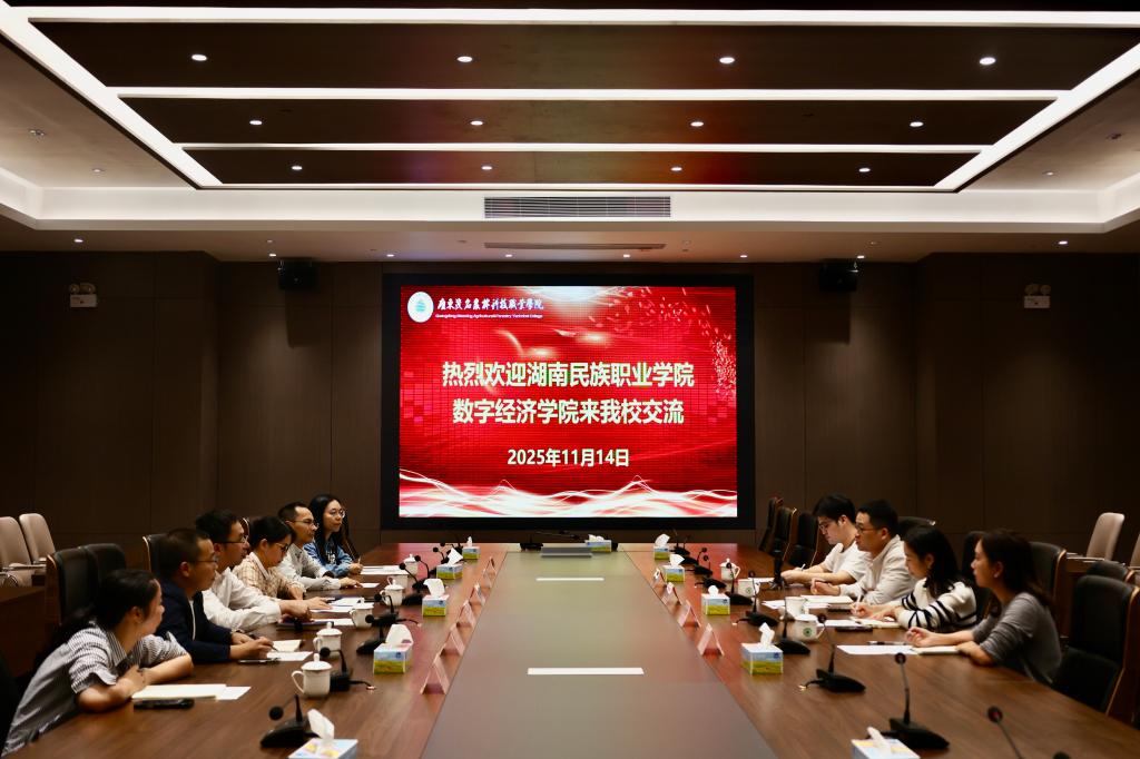 为深化产教融合、推进专业建设与产业需求同频共振,11月14日,湖南民族职业学院数字经济学院院长楚彬率领教师考察团到我校,围绕“专业建设与产业需求精准对接”主题开展深度交流研讨。实训中心负责人丁富贤、经济管理学院党支部书记曾婵及教师代表热情接待了考察团,双方齐聚一堂,共商育人大计、共探合作路径。