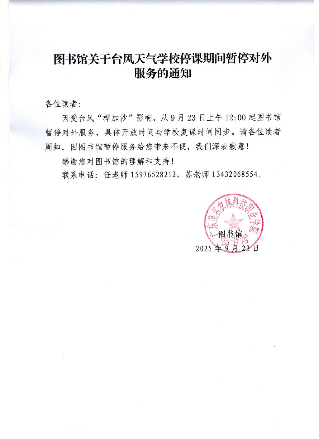 图书馆关于台风天气学校停课期间暂停对外服务的通知