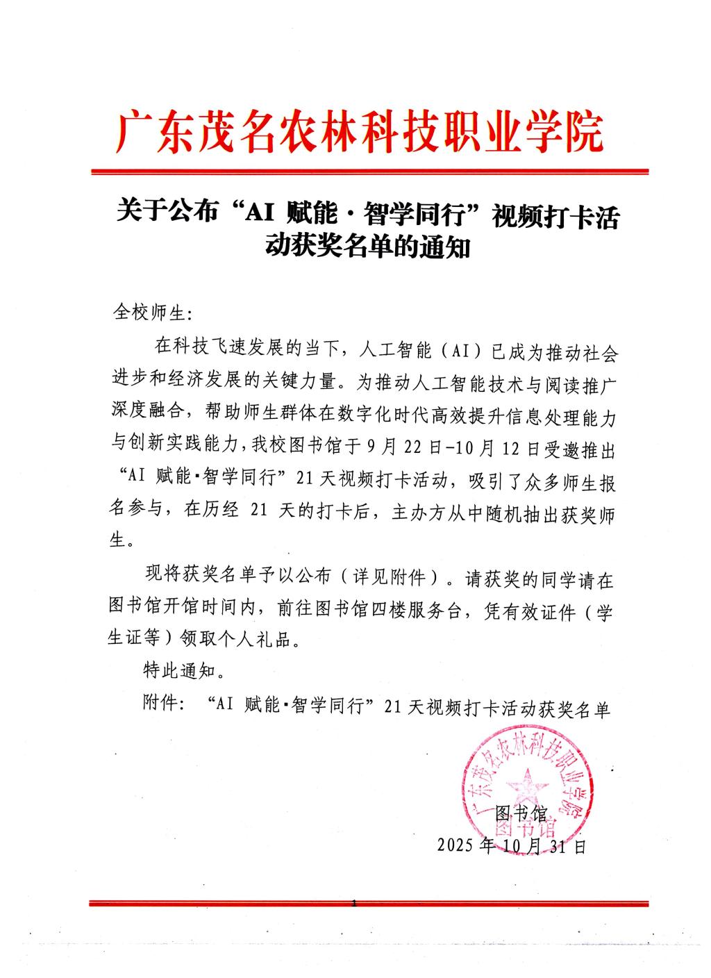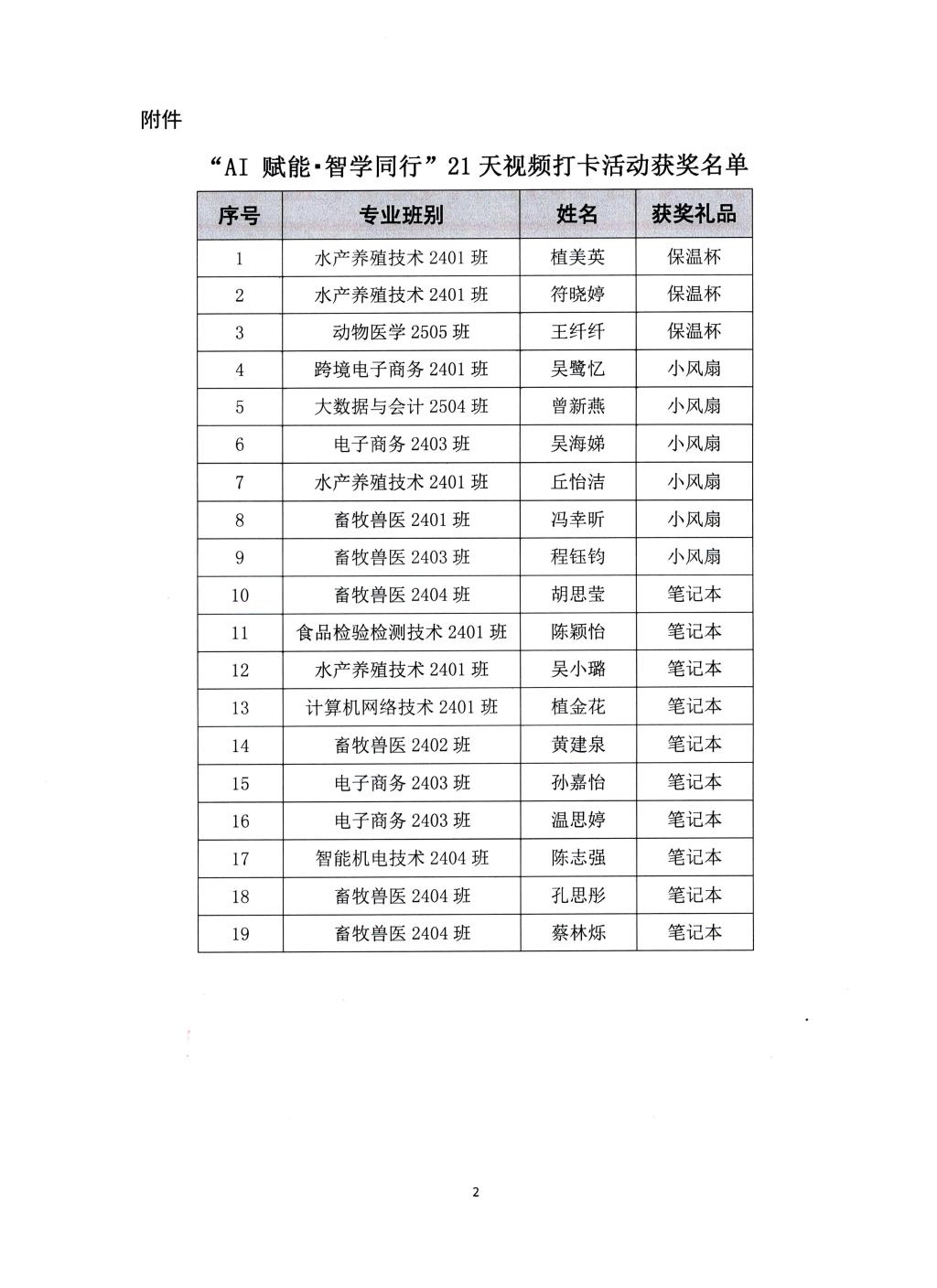 关于公布“AI赋能.智学同行”视频打卡活动获奖名单的通知