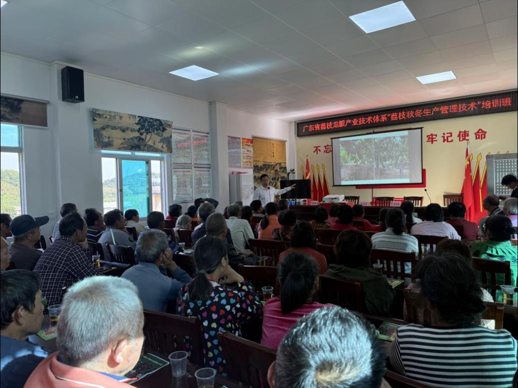 为推广荔枝标准化生产及病虫害绿色综合防控技术,提升荔枝秋冬季管理能力,以科技赋能产业提质增效,广东省荔枝龙眼产业技术体系茂名综合试验站(依托单位:广东茂名农林科技职业学院)于2025年12月12日上午,在高州市谢鸡镇罗迪坑村委会成功举办首期“荔枝秋冬季生产管理技术”培训班。辖区内荔枝产业技术骨干及种植大户积极参与了此次培训。